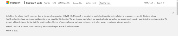 目前微軟還未明確表態,不過也有發表聲明,提到微軟正在監視事件進展,員工、合作夥伴、用戶和其他客戶的健康和福祉是優先考慮,會根據情勢決定。