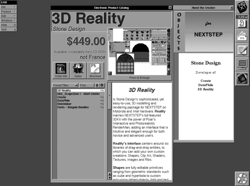 這家公司對賈伯斯回歸和復興蘋果有巨大貢獻,Mac 的靈魂 macOS 就脫胎於 NeXT ComPuter 系統,世界首個應用商店 AppWrapper 也是建構於 NeXT 電腦。當時電腦還是時髦的玩意,用的人並不多,人們購買使用都不方便,甚至只能開車前往像 Egg Head 這類應用程式販賣店買軟體,費時又費力。