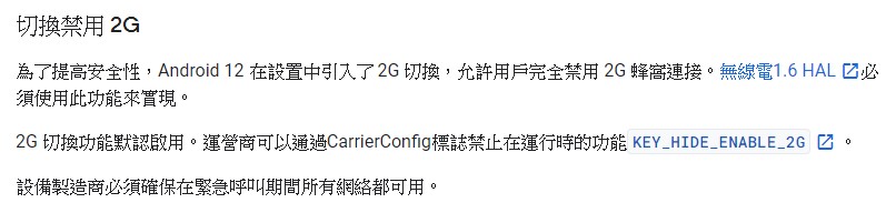 ▲ Android 12 發行說明禁用 2G 功能的描述。(Source:Google)