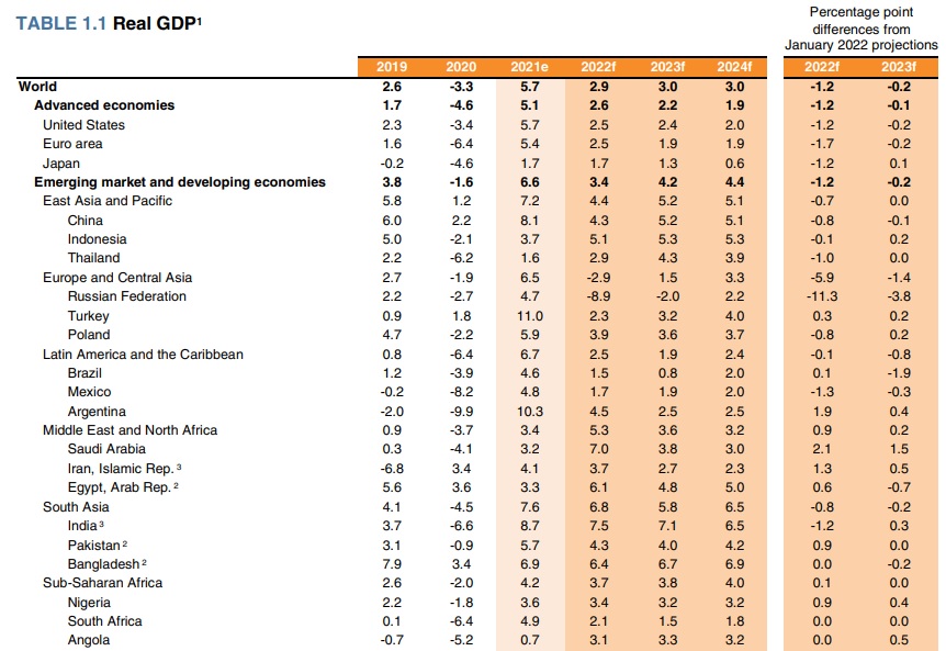 報告指出,如果美國加速升息帶給新興市場和開發中經濟體「強大金融壓力」、歐洲聯盟突然禁止進口俄羅斯能源以及中國再度實施疫情相關封鎖,「全球經濟在2022年可能更加急劇下滑,2023年成長幅度減少將近一半,分別成長2.1%和1.5%」。