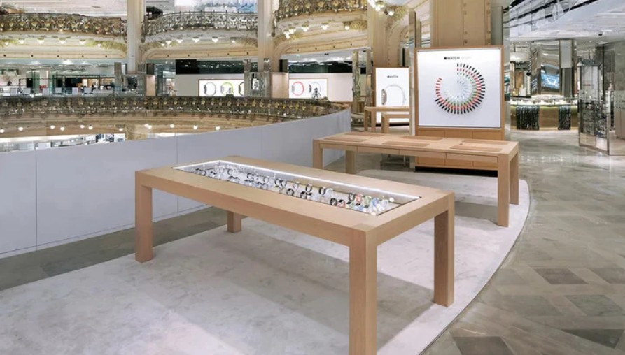 蘋果也開始在法國、英國等高級百貨公司設立 Apple Watch 專櫃,以逐步打入精品市場。只是初代 Apple Watch 功能性與其他產品差異不大,且所謂「精品」策略也無法說服大眾買單。