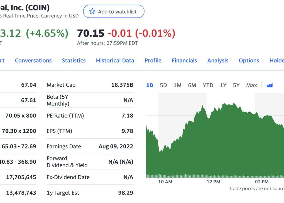 Coinbase 盤前報價最高跳漲 9%