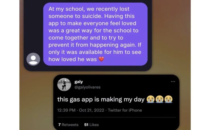 使用者說:「Gas讓我知道身邊有人愛我關心我。每當我難過或不舒服,Gas都能讓我振作起來。」其他人表示每天早上看完Gas訊息後都感覺元氣滿滿。有些使用者說學校以前有同學自殺,但有Gas後讓以為自己不受關心的同學獲得愛和希望。