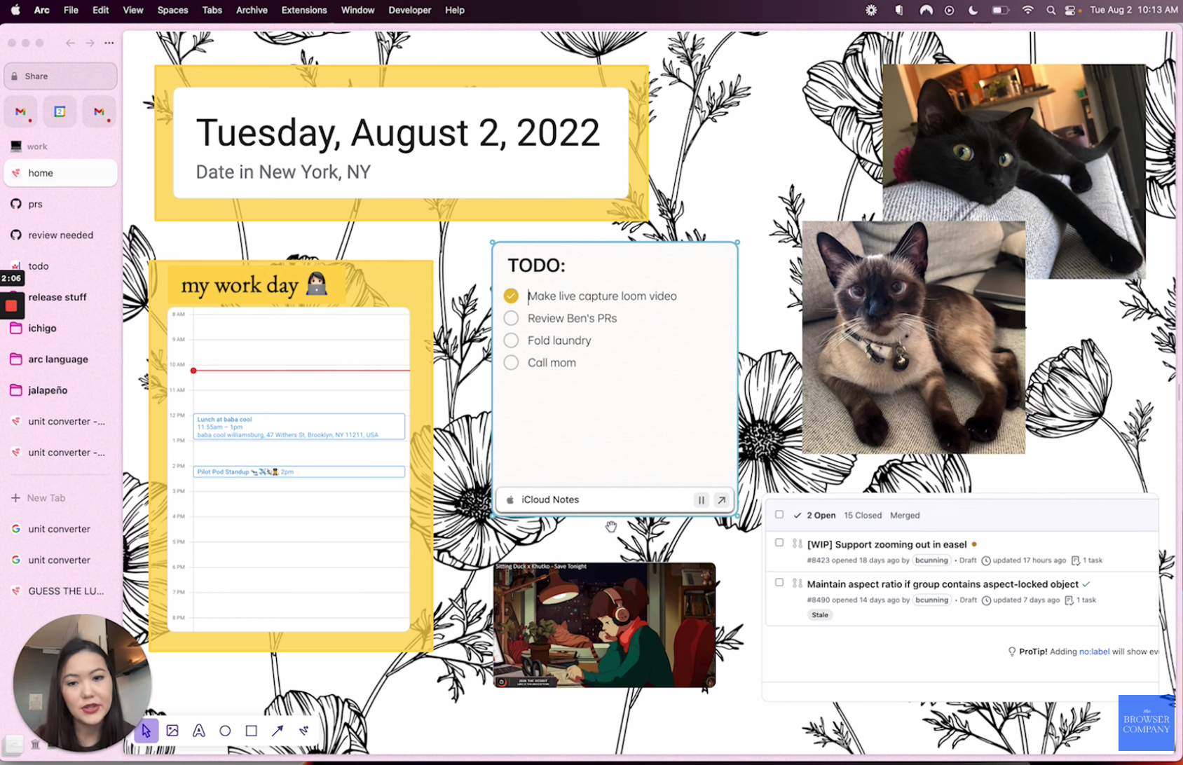▲ Arc的Easel功能放上Google Calendar、Gmail等截圖,這些網站便能即時更新。(Source:The Browser Company)