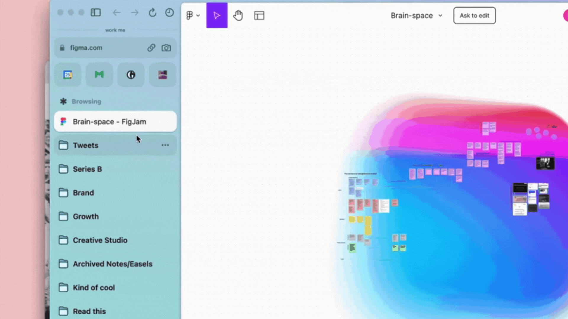 除了用戶個人使用,Arc更幫助公司團隊成員共同工作,交換資訊。協作白板就像Miro,用戶可隨意丟照片、文字,立即與同事分享。