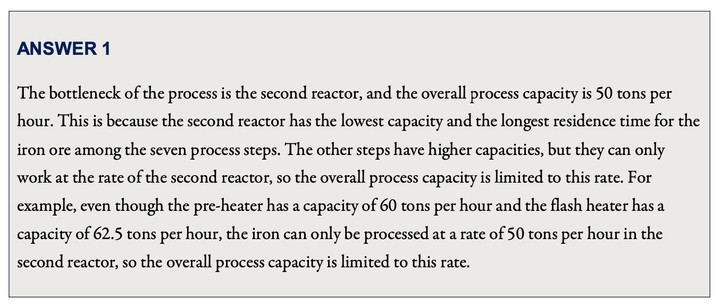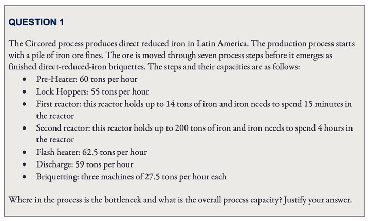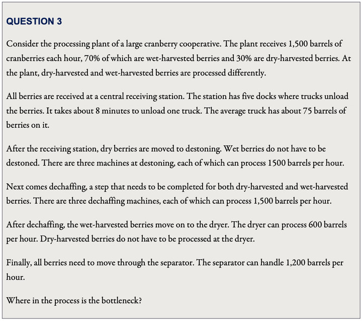 例如,第一題考的就是對「管理瓶頸」概念的理解,並簡單比較「生產過程」中哪個步驟效率最低,找出「瓶頸」。