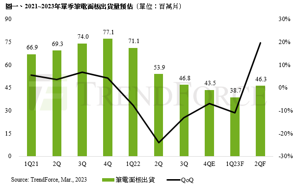 預估筆電面板第一季進入修正尾聲,第二季出貨量將呈現季增近兩成的表現 |
