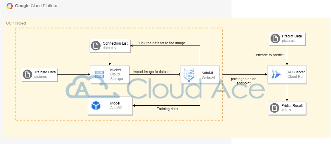 ▲圖片辨識模型訓練 — 架構圖(Source:Cloud Ace)