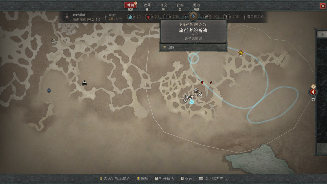 以測試體驗、上次邀請測試內容,以及官方各種消息來看,筆者不認同「《暗黑4》變成MMO了」論調,核心玩法、底層機制依然是傳統暗黑系列設定。出現MMO元素,無非加入新調味料,還不到走味的程度。第一次筆者對「遊戲加了MMO元素」清晰認知的,是地圖支線任務標註。推主線路上順手接了幾個支線,打開地圖看到任務標註範圍瞬間脫口而出:「這不就《魔獸世界》嗎?」