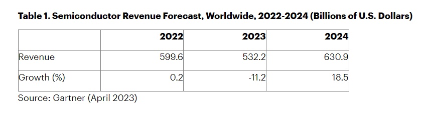 因供應過剩、價格下跌,記憶體銷售慘,美國調查公司 Gartner 預估今年全球半導體市場規模將萎縮 11%,不過隨著廠商減產、供需之後將轉為緊繃,明年半導體市場預估將反彈。