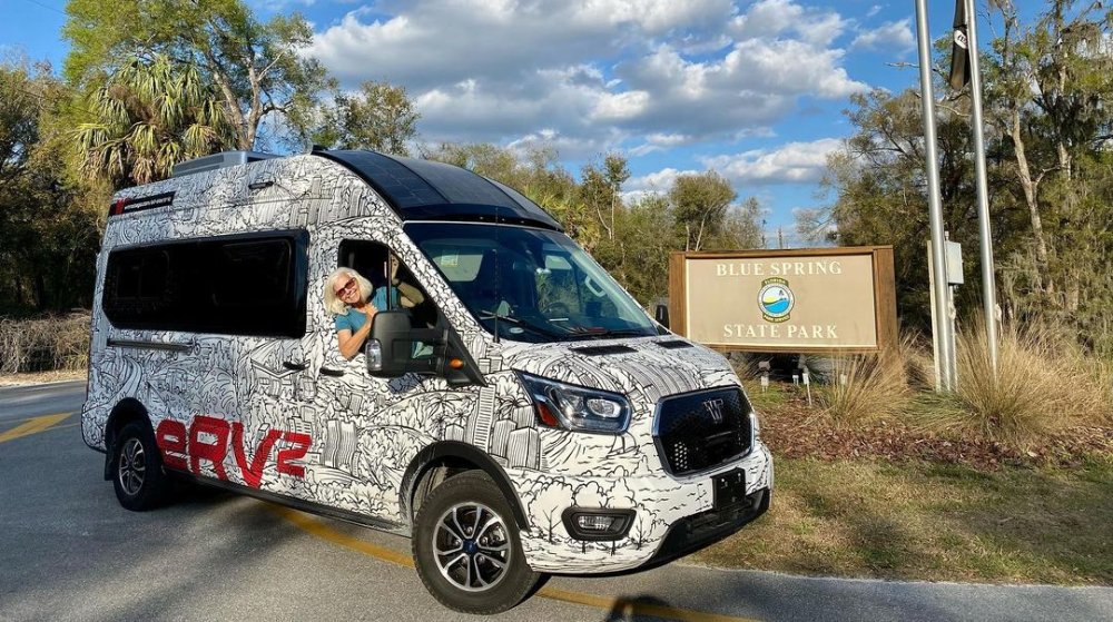 美國房車Winnebago 2022年推出美國首款電動旅行車,基於福特純電Transit改裝,續航200公里,快充45分鐘充滿。