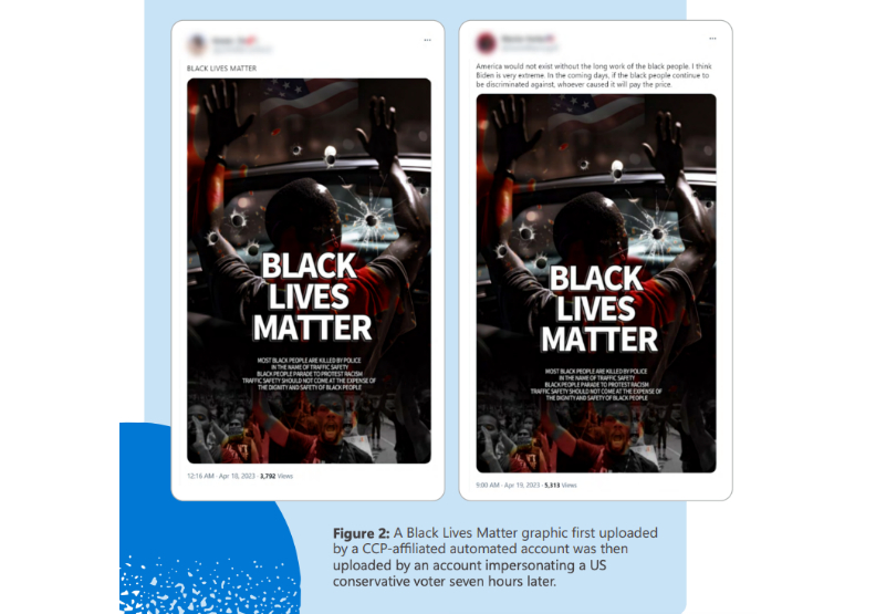 以資訊操弄來看,微軟觀察,中國活動規模變得更大、效果變得更好,不僅觸及更多如你我一樣的真實帳號,且不斷向新平台與新語言擴張版圖。中國一邊在社群媒體散播資訊,一邊則以官媒宣傳,雙管齊下增進效果。