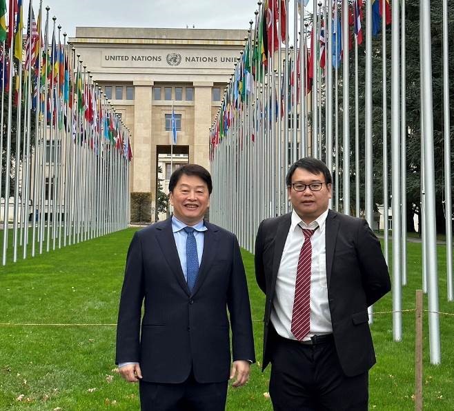 ▲ 資策會執行長暨 AFACT 中華民國代表卓政宏(左)受邀出席於瑞士日內瓦聯合國歐洲總部舉辦的聯合國貿易便捷化與電子商務中心(UN/CEFACT)第 29 屆大會。