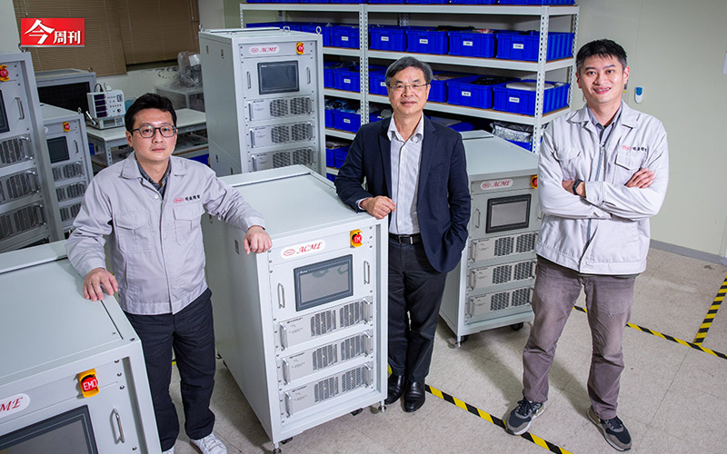▲ 明遠董事長寇崇善(中)與副總經理潘彥儒(左)指出, 自製設備ACME如今已進入晶圓廠製程標準。