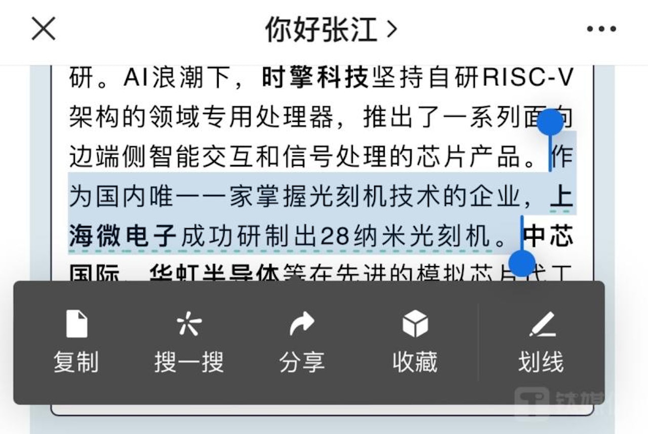 據彭博社、香港 01 報導,上海張江集團 19 日在微信公眾號「你好張江」發文稱,「作為國內唯—一家掌握光刻機技術的企業,上海微電子已成功研製出 28 奈米光刻機」,但不久後便對文字進行修改,改為「作為國內唯一一家掌握光刻機技術的企業,上海微電子致力研製先進的光刻機。」