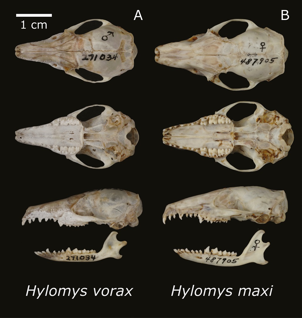 ▲ Hylomys vorax、Hylomys maxi的頭骨標本。(Source:論文)