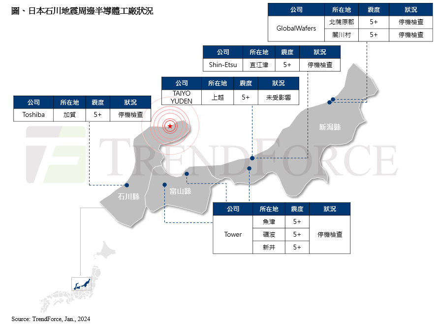 根據 TrendForce 調查日本石川縣能登地區強震影響範圍,