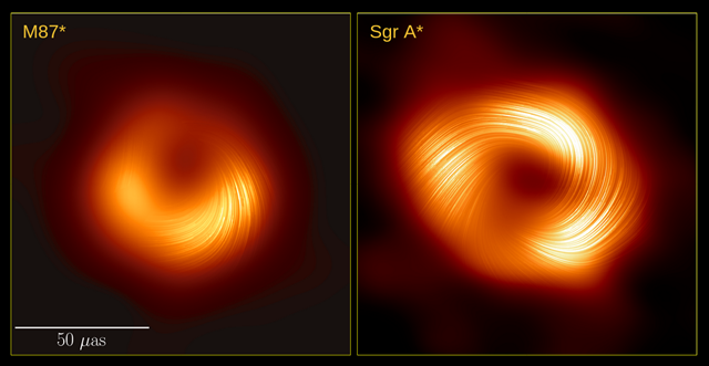 透過對黑洞附近熾熱氣體的偏振光進行成像,可以直接推斷黑洞賴以生存的氣體物質中磁場結構和強度,而最新影像也說明了結果:Sgr A* 與 M87* 黑洞具有驚人相似的極化磁場結構,科學家了解到強大有序的磁場對於黑洞如何與周圍氣體、過熱物質相互作用至關重要。