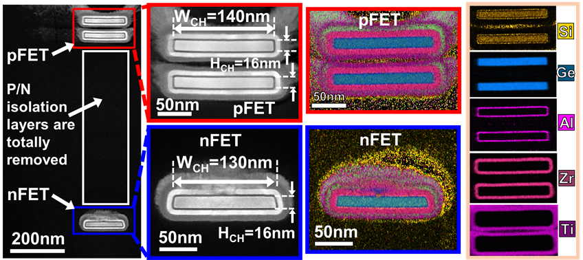 在電晶體堆疊的結構中,電晶體之間良好的絕緣 (isolation) 才能確保電晶體各自能夠獨立操作而不會互相影響。本研究團隊採用多層P/N 接面作為堆疊電晶體之間的電性隔絕,不需要複雜的源極/汲極再生長 (S/D regrowth) 製程,並且能夠取代絕緣層沉積,化簡元件製作流程。相關成果已發表於 2022 IEDM 國際研討會[16]。