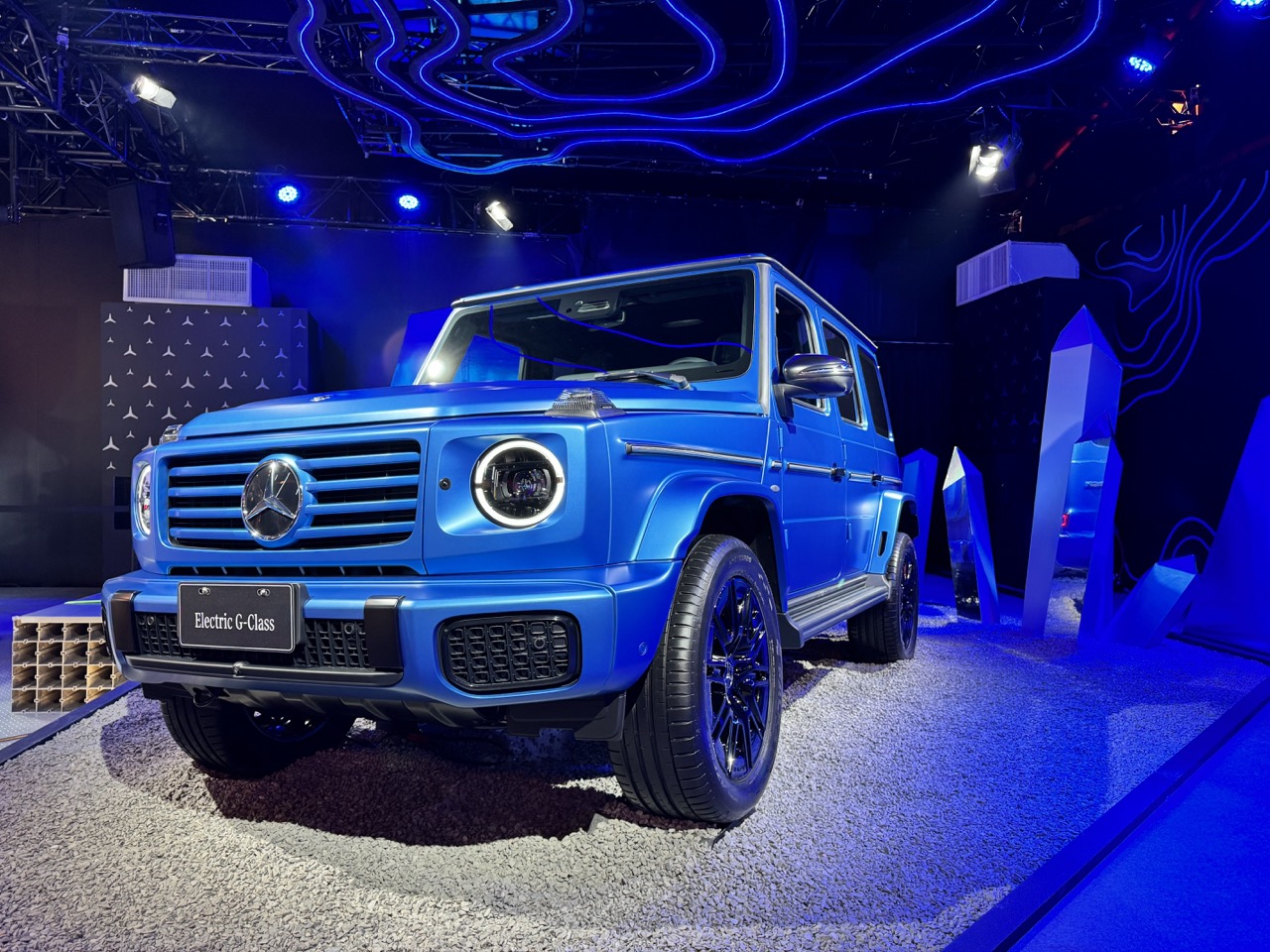 現場還有一輛話題極高的賓士純電 G580,這款被暱稱為 EQG 的越野車,大幅度承襲了 G 的意志,雖然是 EQ 家族,卻不忘在車身上保留各種剛硬線條和外露組件,駕駛艙內也採用大量撥桿式按鍵,和相對起來沒那麼巨大的螢幕,讓它在純電世代中多了一點復古情懷。