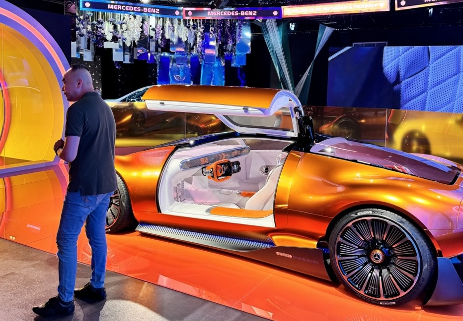 誇張的透明玻璃車頂、流線到分不清車頭車尾的外形、鷗翼門上似有若無的裝飾還有銀色、橘色交織的內裝,讓這輛車超級吸睛,浮誇的 3D 影像呈現還有數位化儀表板,也讓人眼睛一亮,不過這些都只是看熱鬧的部分,它真正革命性的技術在看不見的地方。