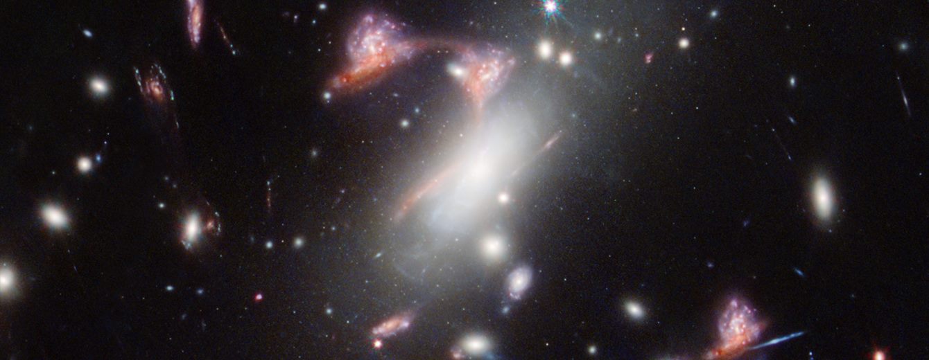 韋伯發現的紅色星系,以及哈伯偵測到與其互動的螺旋星系,正以不尋常的方式放大扭曲,需遠處星系、透鏡和觀察者之間非常稀有的排列,稱之為「雙曲面重力透鏡」(hyperbolic umbilic gravitational lens)。這也解釋了為什麼韋伯影像可看到這對星系的五個影像,四個影像描出問號上半部,問號下方小點是不相關星系,僅恰好在地球視角位置。