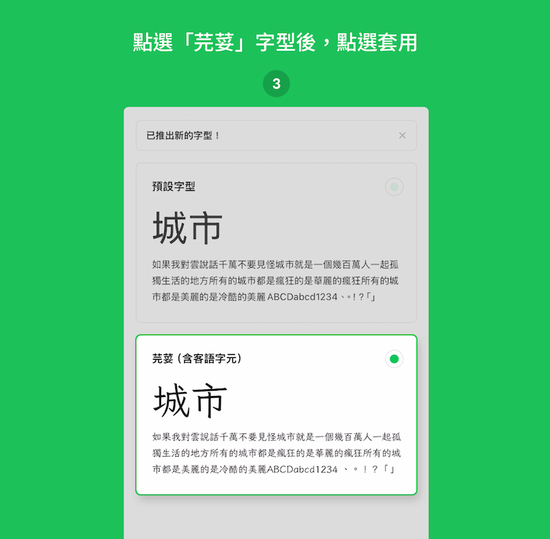 LINE 內建「芫荽」字型、3 步驟輕鬆套用,台客語不缺字