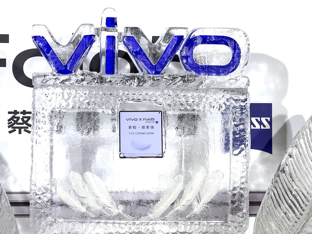 ▲ vivo 將 X Fold5 塞進冰磚內,宣示此一機款即使處於 -20°C 極端低溫環境,仍可穩定使用。