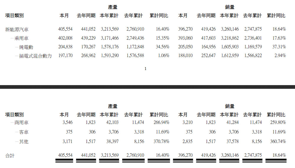 比亞迪今年1至9月的累計銷量達3,260,146輛,與同期相比增長18.64%。這一增長表明比亞迪在整體市場中的地位仍然強大。
