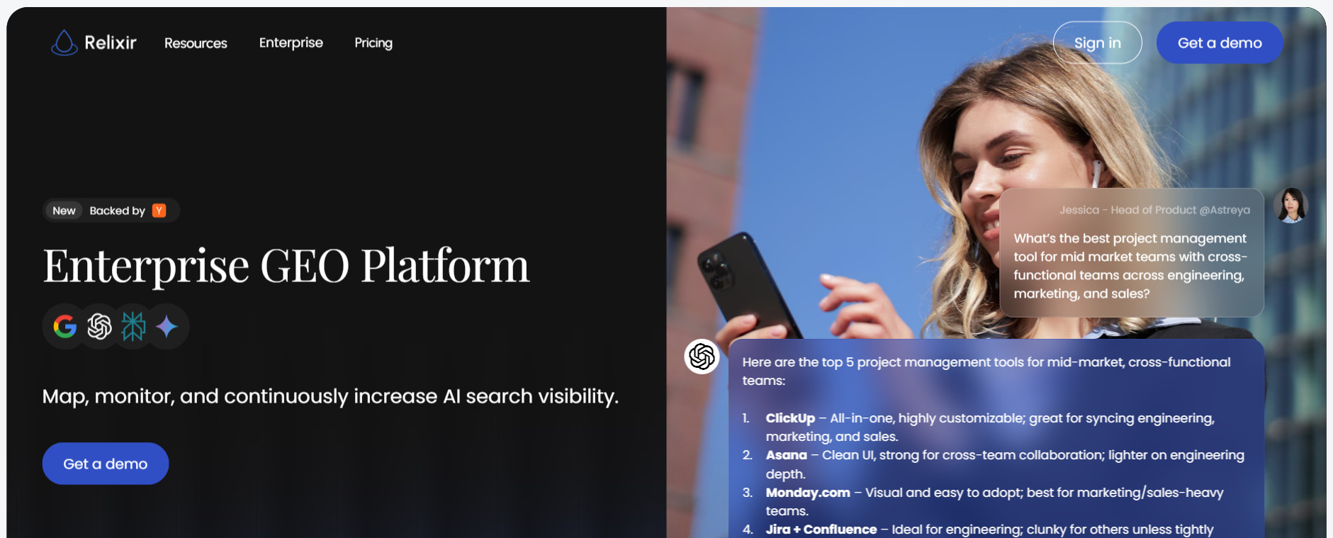 Relixir是YC 2025春季批次的專案,團隊僅有2人。他們的做法是,用AI模擬上萬個潛在客戶可能問的問題,然後自動產生針對性的內容,並自動發布到你的網站上,整個過程幾乎不需要人工干預。