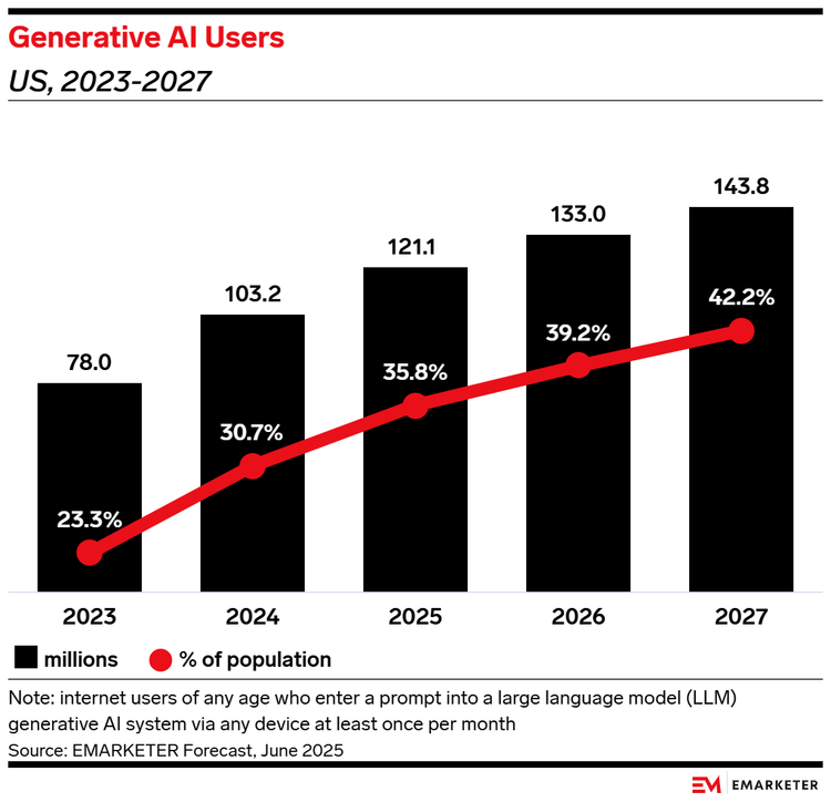 這個對比很能說明問題,AI帶來的流量成長還遠遠無法彌補傳統搜尋流量的下降。但成長趨勢不容忽視,根據Similarweb的數據,ChatGPT對新聞網站的推薦流量在2024-2025年間成長了25倍。