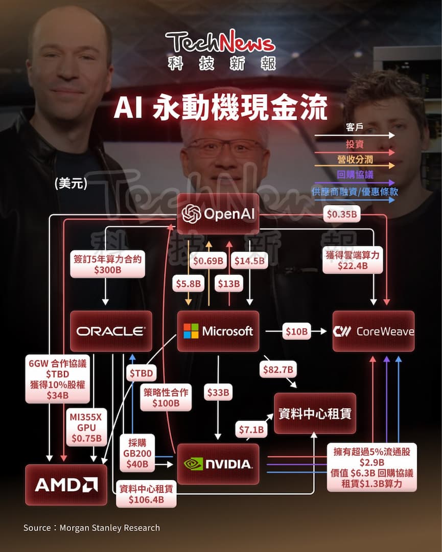 舉例來說,目前包銷條款(take-or-pay)或者回購協議(repurchase agreements) 等現象愈趨普遍,同時也出現新的創新融資架構。這些協議的目的在於加速資料中心的建設並確保產能供應,例如 OpenAI 選擇與 NVIDIA 直接合作,採用完整堆疊解決方案(full-stack solution),而非僅購買單一晶片,但大摩認為這些交易結構複雜,投資人需要更高透明度,以了解其中的財務曝險與潛在機會。
