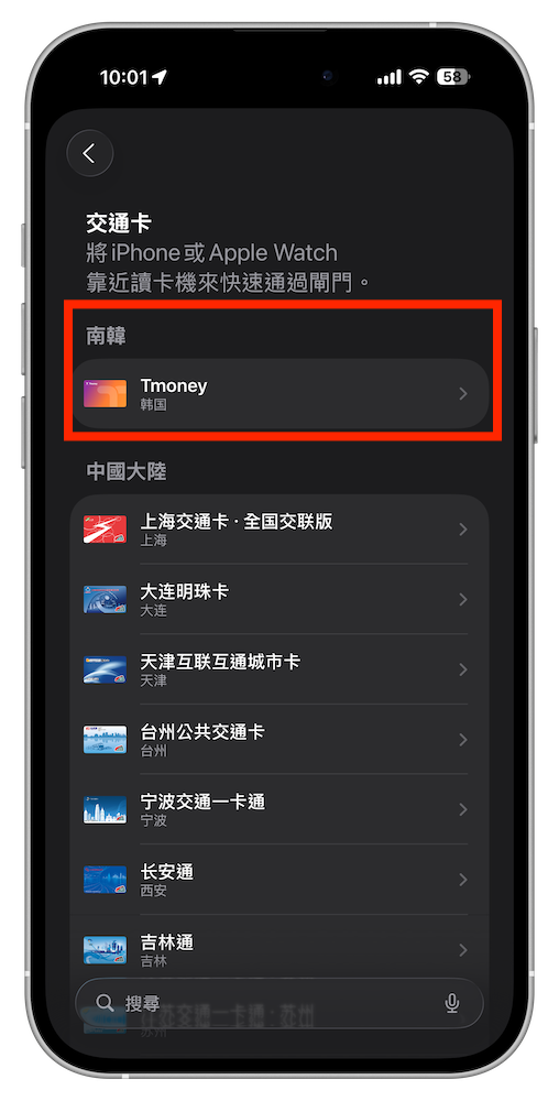 交通方面,蘋果也逐步開放「交通卡」功能,在部分國家可直接透過 Apple Wallet 搭乘大眾運輸。即便是在「三星大國」韓國,當地交通卡 T-Money 也已支援 iPhone 錢包。不過目前台灣用戶仍無法綁定海外信用卡,只能在當地便利商店以現金儲值。