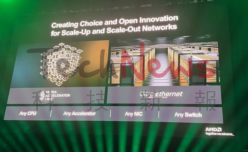 AMD 開放 AI 軟體堆疊 ROCm 及開放互連技術如 UCIe(通用晶片互連介面)、CXL(擴充介面)、UA Link(用於 Scale up)、還有 UEC(用於 Scale Out),都推動 AI 生態系的高速且永續擴張。