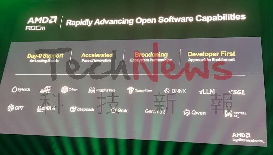 Papermaster 表示,AMD 今年重點放在全面開放 ROCm,打造一個充滿活力的開發者生態系,也加快軟體釋出節奏,強化對整個生態的支援,並提供開發者完整 AI 開發平台。