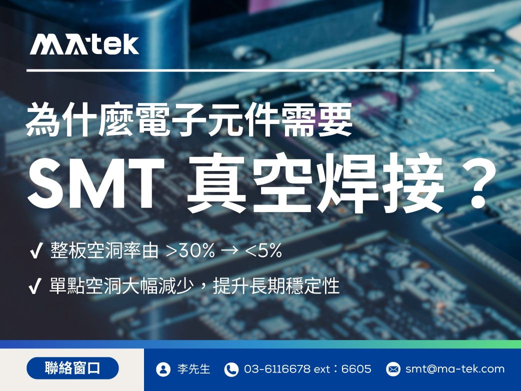電子產品功能不斷強化,對電力處理與熱管理的要求也持續提升。高功率元件 IGBT、MOSFET、LED、射頻電源模組等,廣泛應用於各類高效能設備中。這些元件多採用的 BGA、QFN、LGA、CSP、PQFN、DFN 等封裝形式,雖具備體積小、效率高等優點,也讓 SMT 焊接品質面臨更高的要求。(資料來源:閎康科技〈空洞不再是難題,真空回流焊打造高可靠的SMT焊接品質〉,原文經科技新報修編。)