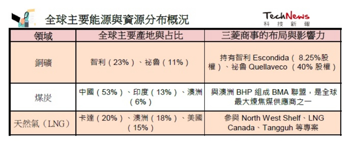 它不僅是日本最大的資源投資商社之一,也在全球主要礦產與能源供應鏈中扮演關鍵角色:在銅礦方面,三菱持有智利 Escondida 與秘魯 Quellaveco 等世界級礦山的股權,兩座礦區的產量加總,約占全球三成多。