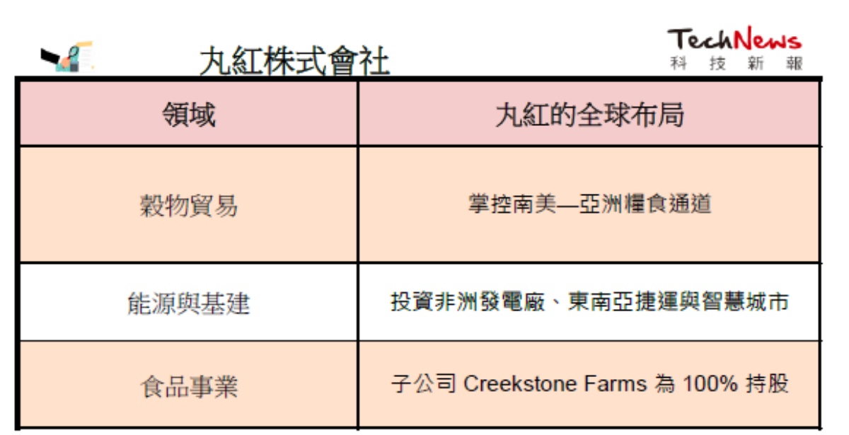 丸紅是全球最重要的農產品貿易公司之一,在玉米、大豆、小麥等穀物市場的交易量是全球最大的糧食交易商之一。它掌握從南美農場到亞洲港口的完整供應鏈,也積極布局能源與基建領域,投資多國電廠、非洲智慧城市與東南亞交通專案。