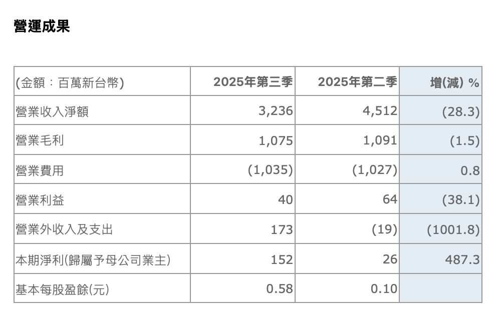 ASIC 設計服務暨矽智財(IP)研發銷售領導廠商智原科技今(28 日)公布第三季合併財務報表,合併營收新台幣 32.4 億元,季減 28%、年增12%,毛利率 33.2%,歸屬於母公司業主之淨利為 1.5 億元,基本每股盈餘為 0.58 元。