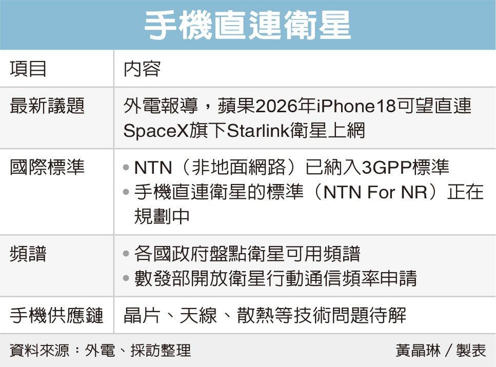 外媒報導,蘋果規劃明年iPhone 18系列,調整免費衛星連線服務,並導入全新技術,部分機型可望支援星鏈衛星上網功能,成為「5G衛星直連」的智慧手機,屆時可望不只是「衛星SOS緊急服務」.還能上網及通話等,也象徵智慧手機直連衛星邁入商用的新里程碑。