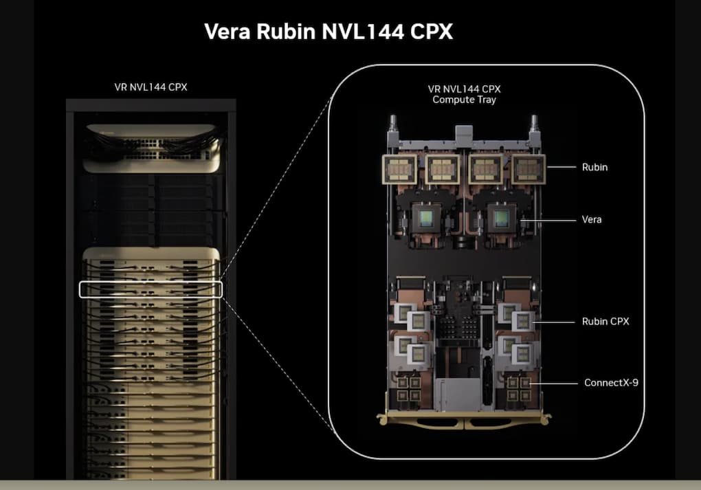 ▲ NVIDIA Vera Rubin NVL144 CPX 機架與機櫃,配備 Rubin Context GPU(Rubin CPX)、Rubin GPU,以及 Vera CPU。(Source:NVIDIA)