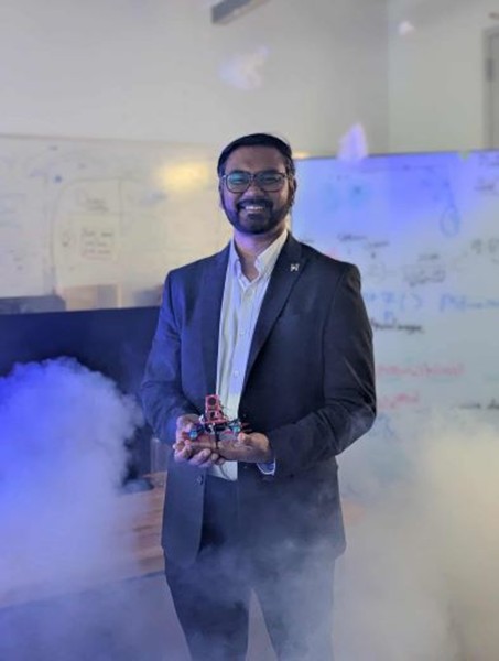 助理教授桑凱特(Nitin Sanket)(見下圖)表示,當發生地震或海嘯時,電力線往往會首先中斷,許多救援行動需要在夜間進行,因此他們開始研究自然界中是否有生物能夠在這種情況下有效導航。桑凱特教授獲得了國家科學基金會(NSF)「Foundational Research in Robotics (FRR) program」的約70.5萬美元資助,專案名為「Sound Navigation: Enabling Tiny Robots to Find Their Way Through Smoke, Dust, and Darkness」,專攻聲波導航與生物啟發機器人。
