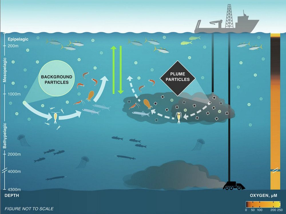 研究指出,若採礦作業將廢物排放至海洋的中層帶(海面下大約200至1,500公尺的區域),將可能導致微小的浮游生物及其捕食者的食物來源受到影響,進而影響整個食物鏈。這個發現恰逢美國總統川普曾試圖繞過國際法,推動商業化的深海採礦計畫,這在全球尚未實現。