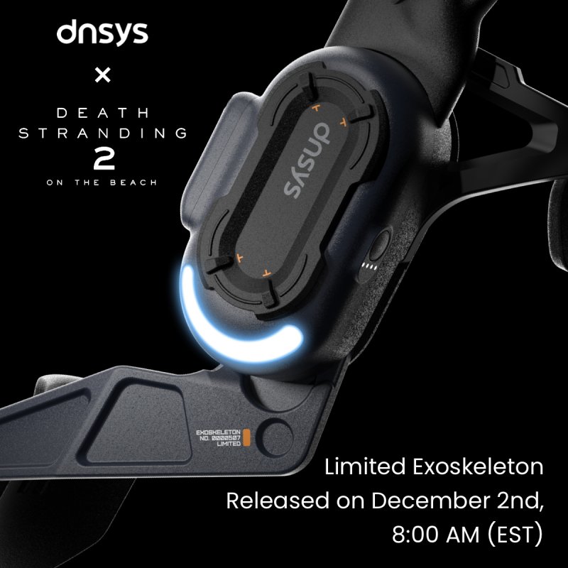 外骨骼研發製造商 DNSYS 於 11 月 10 日宣布,將與小島工作室合作,推出以旗下外骨骼產品「DNSYS Z1」為基礎、人氣遊戲〈死亡擱淺 2:冥灘之上〉為主題的聯名產品「DNSYS Z1 Exoskeleton Pro – DEATH STRANDING 2: ON THE BEACH Edition」,12 月 2 日上市。