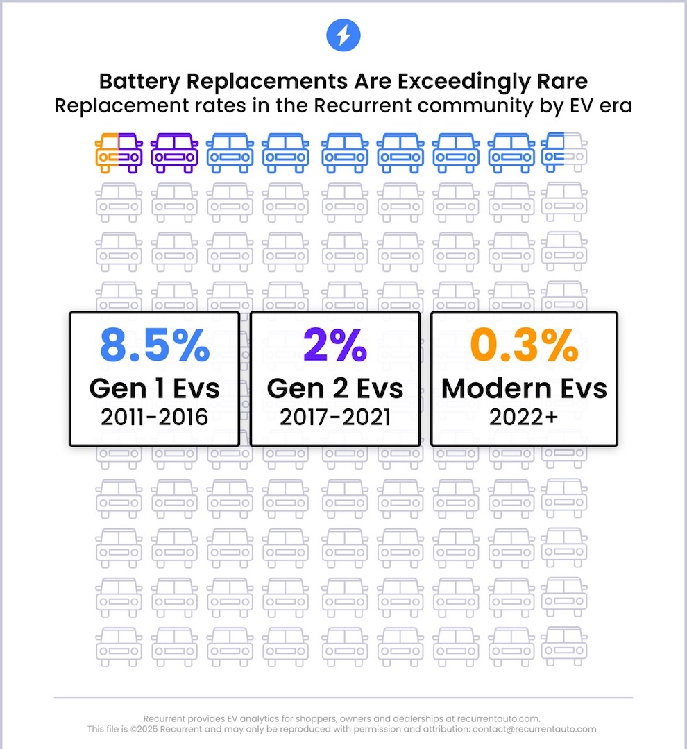 ▲過去三年出廠的電動車電池汰換比例僅 0.3%。(Source:Recurrent)