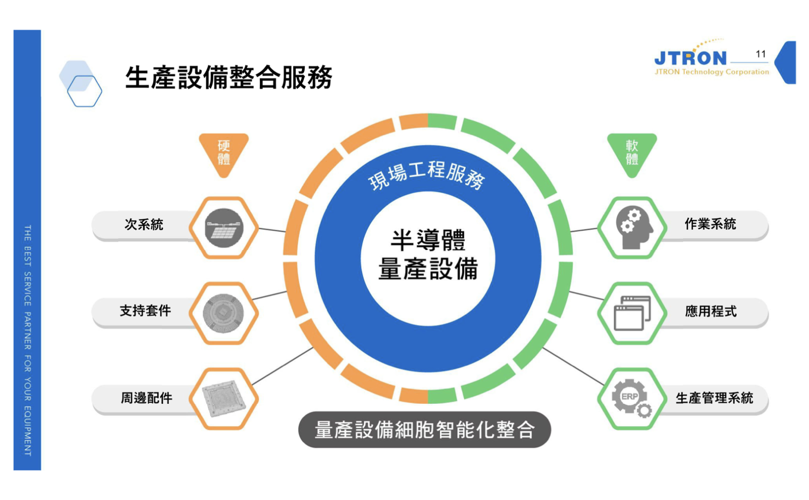 林益民表示,捷創科技長期深耕半導體領域,主要業務涵蓋半導體測試設備整合服務及智慧自動化解決方案,提供測試設備完整生命週期的裝機、移機、校驗、維修及設備延壽服務,研發團隊專注於開發提升產能的客製化產品,以及導入智慧自動化的創新應用,協助客戶達成高效率的生產。