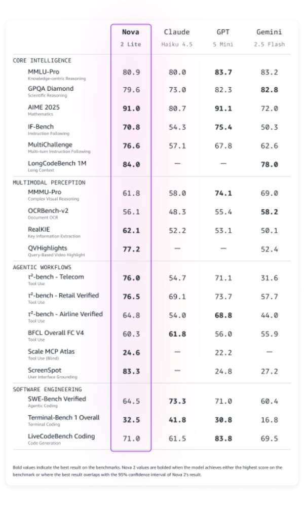 Nova 2 Lite 允許使用者調整其模型需要進行多少逐步推理,在延遲和準確度之間取得平衡。它也內建網路搜尋和程式碼編輯能力,使模型能在回應當中引用最新資訊。
