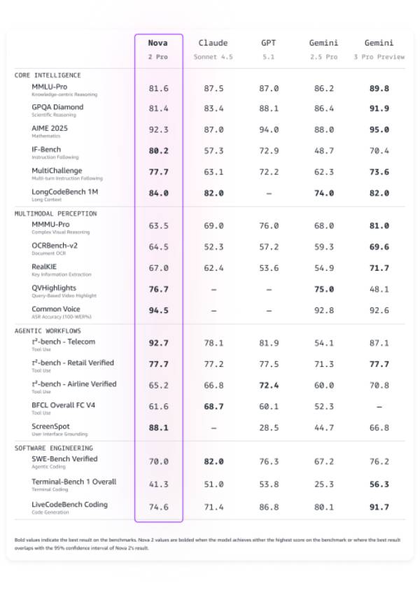 與 Nova 2 Lite 相同的是,Nova 2 Pro 具備網路搜尋和程式碼編輯能力,還能作為教師模型用於知識蒸餾,將其能力轉移至更小、更高效、專精領域的學生模型。