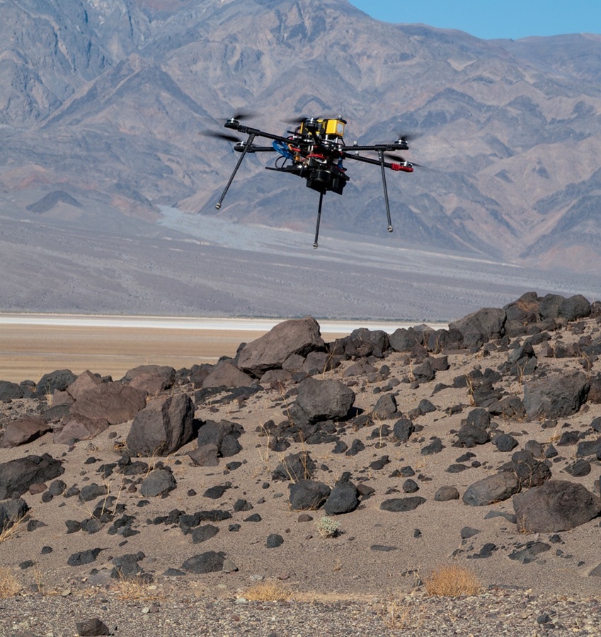 機智號2024年初執行任務時損壞一片旋翼,無法再飛行,促使NASA噴射推進實驗室(JPL)工程師積極開發新無人機,以克服跨越平坦且紋理較少地形時受限。他們選擇死亡谷為模擬火星環境的測試場所,因荒涼沙丘和平原就如火星山(Mars Hill)與梅斯基特沙丘(Mesquite Flats Sand Dunes),可模擬火星低紋理的崎嶇地形,挑戰無人機導航和降落演算法。