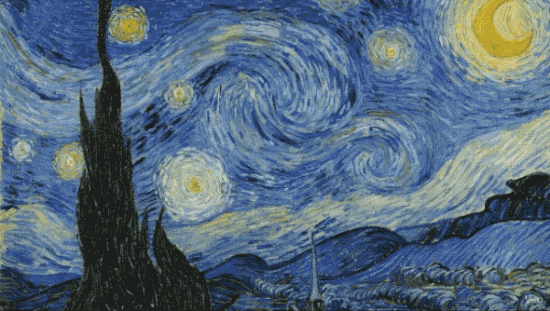 ▲ 提示詞:將油畫紋理動畫化為黏稠流體類比,厚重的顏料筆觸融化並流動。 旋轉的天空、黏稠的黃色光芒、翻騰的藍色雲朵。